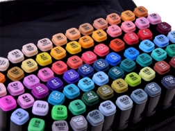 Zestaw dwukońcówkowych markerów alkoholowych PROTONE oferuje szeroką paletę 80 wyrazistych kolorów, które łatwo się warstwują i płynnie przechodzą. Dzięki szybkoschnącemu i wysoko pigmentowanemu atramentowi osiągniesz precyzyjne rezultaty bez niepożądanego rozmazywania oraz z długotrwale stałą intensywnością.