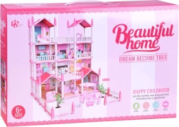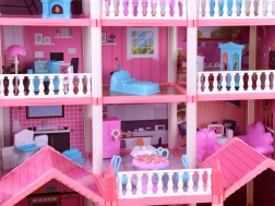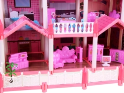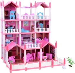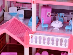 Ta urokliwa różowa willa daje dzieciom naprawdę dużo przestrzeni dla wyobraźni: 10 dopracowanych pokoi, balkony i taras zachęcają do zabawy w dom, hotel lub pensjonat. Elementy konstrukcyjne i meble wykonano z wytrzymałego plastiku, natomiast ściany, podłogi i dachy to karton z kolorowym nadrukiem pomieszczeń – po złożeniu dom wygląda bardzo estetycznie i przytulnie.