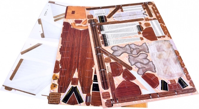 Precyzyjnie wycinane części o drewnianym wyglądzie idealnie do siebie pasują i ułatwiają budowę nawet początkującym.