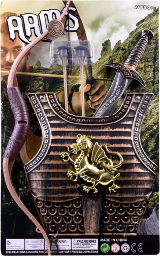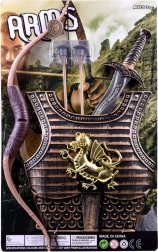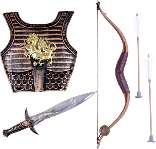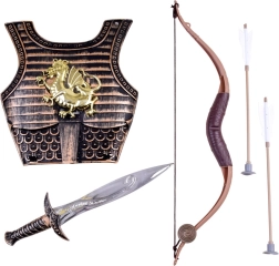 Zestaw zawiera zbroję, łuk, dwie strzałki i miecz – idealne połączenie do fantastycznych bitew i kostiumów karnawałowych.