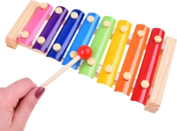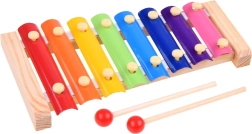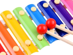 Tęczowe metalowe sztabki pozwolą dzieciom zagrać proste piosenki oraz ćwiczyć słuch i rytm.