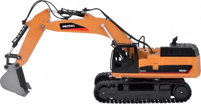 Obrotowa kabina, gumowe gąsienice oraz precyzyjnie sterowane ramię z metalową łyżką do nabierania, podnoszenia i wysypywania – zupełnie jak w prawdziwej koparce.