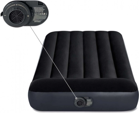 Praktyczny nadmuchiwany materac INTEX dla jednej osoby oferuje wymiary 191 × 99 × 25 cm, wbudowaną elektryczną pompę do szybkiego pompowania i spuszczania powietrza, przyjemną aksamitną (welurową) powierzchnię oraz wytrzymałą konstrukcję Fiber-Tech/Dura-Beam. Idealny w domu i w podróży, z maksymalnym udźwigiem 136 kg i profilowaną poduszką pod głowę dla większego komfortu.
