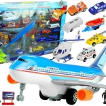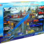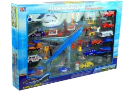 Ten szczegółowo opracowany zestaw lotniskowy zapewni dzieciom długie godziny zabawy. Znajdziesz w nim wszystko, co potrzebne do stworzenia własnego lotniska: od maty pasa startowego, przez duży samolot pasażerski i helikopter, po autobusy, pojazdy policyjne i ratunkowe, straż pożarną z wysuwną drabiną i sprzęt roboczy. Akcesoria takie jak palmy, znaki, szlabany i lampy potęgują realistyczny klimat.