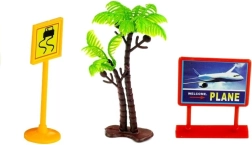 - Mata pasa startowego, duży samolot, helikopter, 9 figurek, 2 przyczepy z bagażem, przyczepa z łodzią ratunkową, autobus, radiowóz policyjny, pojazd ratunkowy, 2 wozy strażackie (1 z wysuwną obrotową drabiną), lotniskowy pojazd serwisowy z możliwością podłączenia przyczepy, pojazd roboczy z obrotowym elementem i wysuwaną podnośnią/drabiną, palmy, szlabany, lampy, znaki drogowe