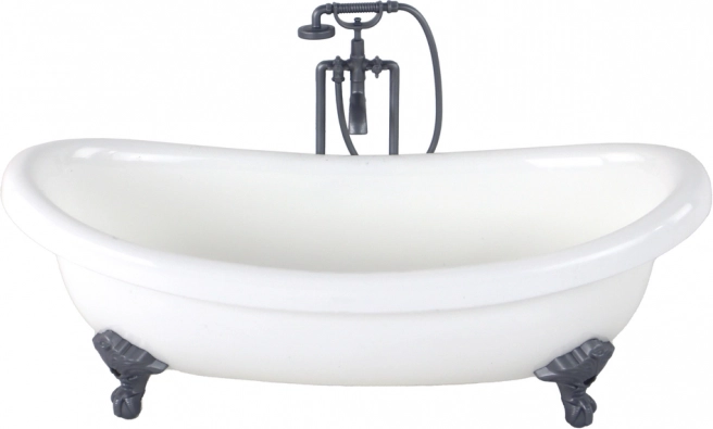 Biała wanna w stylu vintage wspiera realistyczną zabawę w łazience i dopełnia cały zestaw.
