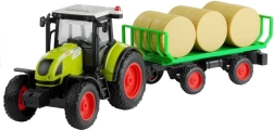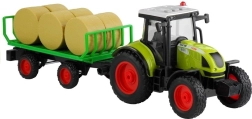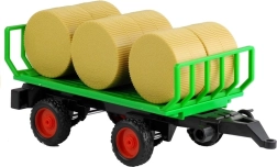 Odłączana przyczepa przewozi 6 bel siana, które można dowolnie ładować i rozładowywać. Napęd cierny pozwala traktorowi jechać do przodu po popchnięciu, a gumowe koła z bieżnikiem zapewniają stabilną jazdę po różnych nawierzchniach. Zabawka wykonana z wysokiej jakości, wytrzymałego plastiku bez ostrych krawędzi, spełnia normy CE i EN 71.