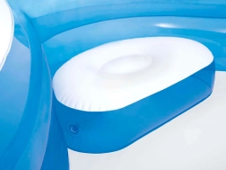 Ciesz się latem w pełni z przestronnym nadmuchiwanym basenem, który oferuje 4 zintegrowane siedziska z oparciami w narożnikach dla maksymalnego komfortu. Wytrzymałe PVC, stabilna konstrukcja z 2 komorami powietrznymi oraz dopracowane detale czynią go idealnym rozwiązaniem do ogrodu, na taras i na wakacje.