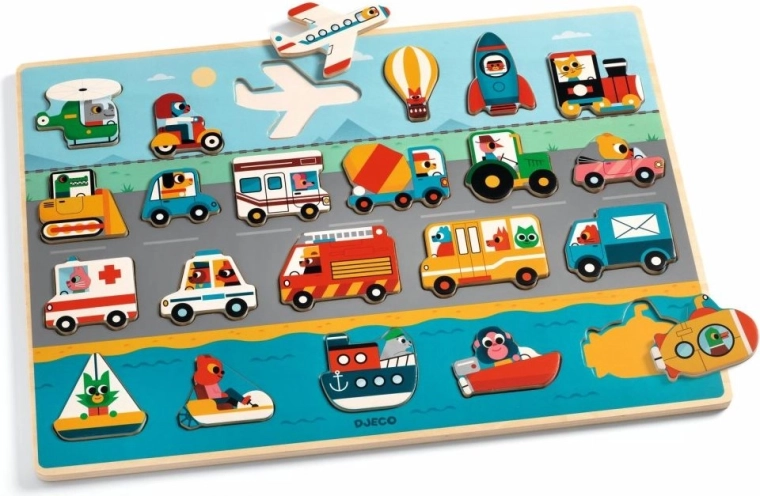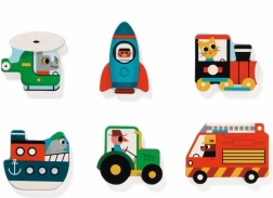 Odkryj kolorową drewnianą układankę z motywem środków transportu od DJECO, która wspiera małą motorykę, koordynację ręka–oko oraz logiczne myślenie. Elementy z pojazdami pasują do frezowanych ramek, mają kolorowe obrysy ułatwiające orientację i można je wykorzystywać także jako samodzielne figurki do kreatywnej zabawy.