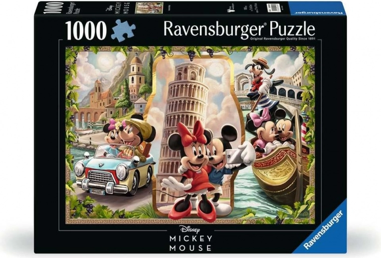 Ciesz się godzinami zabawy z wysokiej jakości puzzlami RAVENSBURGER. Motyw z postaciami MICKEY i MINNIE na wakacjach ucieszy całą rodzinę, a precyzyjne wykonanie i 1000 elementów zapewnią świetne wyzwanie i relaks.