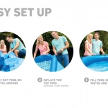 Wystarczy napompować górny pierścień i w ciągu około 10 minut można zacząć napełniać wodę. Idealny na szybkie letnie orzeźwienie.