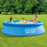 Nadmuchiwany basen INTEX Easy Set 305 × 76 cm to idealny wybór na szybkie letnie ochłodzenie. Wystarczy napompować górny pierścień, rozłożyć basen na równej powierzchni i po kilku minutach można napełniać go wodą. Lekkie, sezonowe rozwiązanie bez wymagającego montażu, które zapewni dość miejsca dla dzieci i dorosłych.