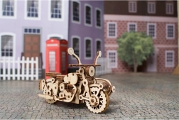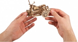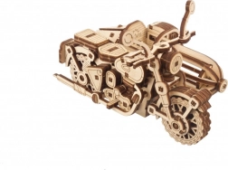 Drewniana mechaniczna układanka wojskowej ciężarówki jest inspirowana prawdziwymi pojazdami przeznaczonymi do trudnych warunków. Ten model doskonale naśladuje każdą ważną część pojazdu, w tym obracające się koła i otwieraną maskę. W zestawie znajduje się również zbiornik na paliwo i zapasowa opona.