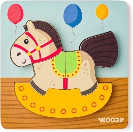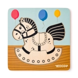 Układanka Konik na huśtawce to idealna zabawka dla dzieci od 1. roku życia, wspierająca ich kreatywność i umiejętności motoryczne.