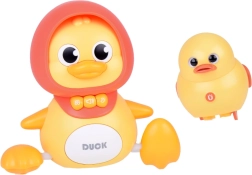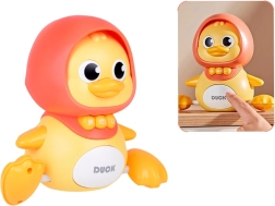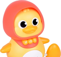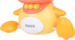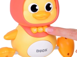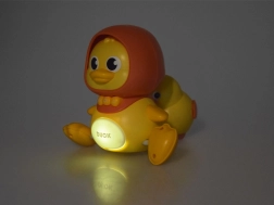 Interaktywne kaczuszki to świetny wybór na pierwsze zabawy i motywację do ruchu. Duża kaczka przesuwa się do przodu po równej powierzchni, wesoło kołysze się na boki, a na brzuszku świeci światełko, które można wyłączyć jednym naciśnięciem. Muzyczny podkład rozwija poczucie rytmu oraz stymuluje słuch i wzrok.