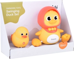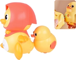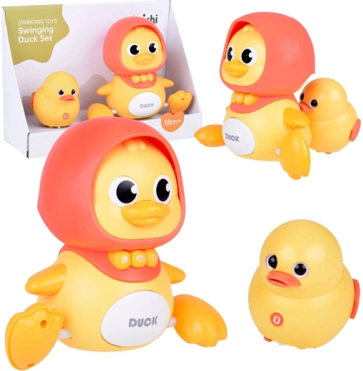 Uroczy zestaw kaczuszek z ruchem, światełkiem i melodiami motywuje dzieci do raczkowania i odkrywania. Duża kaczka rytmicznie kołysze się na boki i odtwarza wesołe i kojące melodie, mniejsza kaczuszka może zostać połączona za pomocą magnesu, tworząc zabawny „pociąg”. Prosta obsługa, regulacja głośności oraz tryb nocny z delikatną melodią dla spokojnego zasypiania.