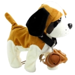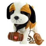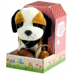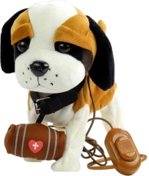Interaktywny brązowo-biały Bernardyn na smyczy wykonany jest z miękkiego i przyjaznego dla środowiska materiału, który jest przyjemny w dotyku. Wyposażony jest w duże ciemne oczy, uniesiony ogon i wyrazisty nos. Zabawka zawiera długą smycz z przełącznikiem, dzięki któremu dziecko może łatwo sterować swoim zwierzątkiem. Piesek tańczy i śpiewa, co dodaje zabawie realizmu i frajdy.
