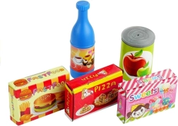 Ta zabawka jest odpowiednia dla dzieci od 3 lat i zawiera łącznie 50 elementów: owoce, warzywa, sery oraz klasyczne potrawy, takie jak pizza, hot-dog czy chipsy. Dzieci mogą liczyć na długie godziny zabawy z tym realistycznym zestawem.