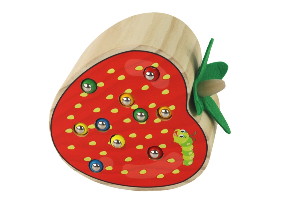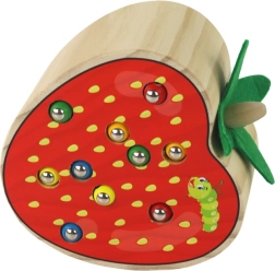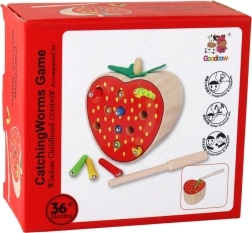 Gra polega na fascynującym zadaniu łowienia uroczzych robaczków za pomocą drewnianej wędki z magnesem. Robaczki są sprytnie ukryte w malowniczych otworach w drewnianej truskawce. Zadaniem malucha jest następnie precyzyjne umieszczenie ich z powrotem. To wyzwanie, które nie tylko rozwija koncentrację, ale także poprawia sprawność manualną, koordynację ruchową i motorykę.