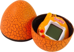 Zwróć uwagę, że Tamagotchi ukryte jest w dużym pomarańczowym jajku, a w środku znajduje się małe elektroniczne zwierzątko, o które możesz się troszczyć!