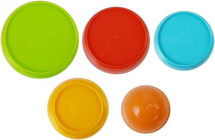 - 5 elementów w różnych kolorach i rozmiarach – idealne do układania i wkładania