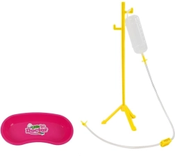 - Bogate wyposażenie: zęby ze szczęką, stojak na kroplówkę, strzykawka, wiertła, lusterko ze światełkiem, nożyczki, pęseta, okulary, szczoteczka, miseczka, leki i inne.