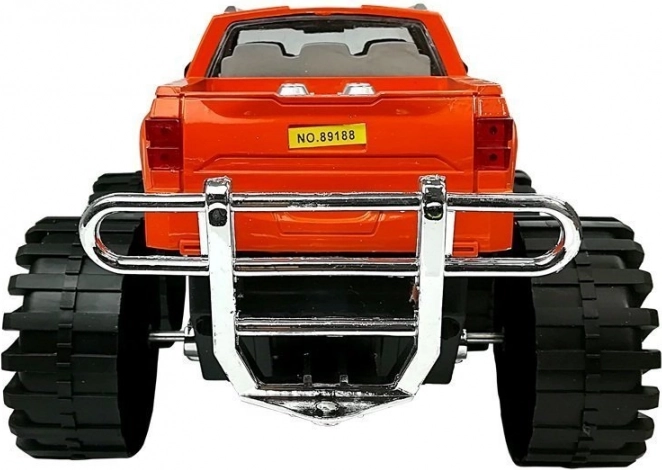 Monster truck radzi sobie z nierównościami, a duże koła i podwyższone zawieszenie nadają jeździe realizmu. Auto na przyczepie można łatwo załadować i rozładować, co wspiera motorykę i wyobraźnię dzieci. Idealny jako prezent – zapakowany w pudełko z przezroczystym okienkiem.