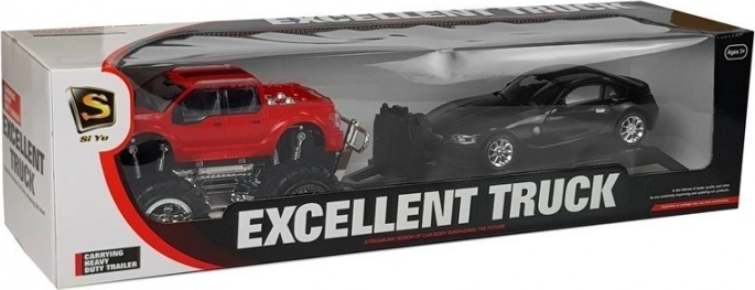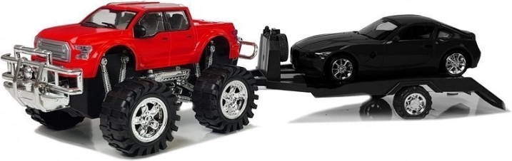 Ten wartościowy zestaw łączy solidny czerwony monster truck z odpinaną platformą autotransportera oraz szczegółowo wykonanym sportowym BMW. Zabawki wykonano z odpornego na uderzenia plastiku, który wytrzymuje intensywniejszą zabawę, dzięki czemu doskonale nadają się do domowych torów i terenowych przygód.