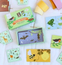 Zabawna układanka przyporządkowująca dla dzieci od 2 lat rozwija logiczne myślenie, poznawanie przyrody i małą motorykę. Zawiera 10 oddzielnych par, w których dzieci szukają, gdzie mieszka zwierzątko. Elementy są z wytrzymałej tektury, mają duży format dla małych rączek, a wszystko jest schowane w praktycznym pudełku ułatwiającym przechowywanie.