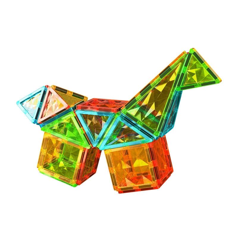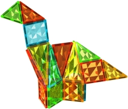 Geomag Gems nie tylko bawi dzieci, ale także uczy i w atrakcyjny, angażujący sposób wprowadza je w świat nauki i budownictwa. Geomag Gems 44 to zestaw magnetycznych płytek zaprojektowany tak, aby rozwijać kreatywność, zręczność manualną i wyobraźnię przestrzenną dzieci od 3. roku życia. Kolorowe płytki w kształcie kwadratów i trójkątów, ozdobione wyrazistą, błyszczącą strukturą, zachęcają do tworzenia konstrukcji pełnych blasku. Dzięki łatwemu łączeniu za pomocą magnesów dziecko może budować bryły przestrzenne, takie jak wieże, domy czy inne pomysłowe budowle. Zabawka wspiera rozwój kreatywnego myślenia i umiejętności motorycznych, a także pozwala dzieciom w naturalny sposób eksperymentować z zasadami geometrii i równowagi.