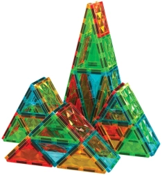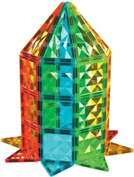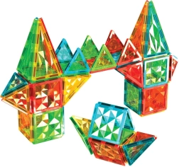 Odkryj radość kreatywnego budowania z przezroczystych kwadratów i trójkątów o błyszczącej, fasetowanej strukturze. Magnetyczne krawędzie intuicyjnie łączą się ze sobą, dzięki czemu nawet małe dłonie łatwo zbudują stabilne wieże, rakiety i inne fantazyjne obiekty – bez skomplikowanego zatrzaskiwania.
