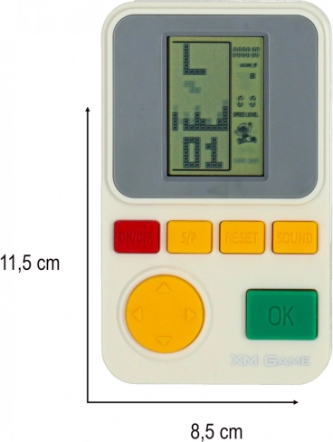 Ta przenośna mini konsola oferuje ulubioną grę z opadającymi klockami w prostej i wytrzymałej konstrukcji. Dzięki kompaktowym wymiarom łatwo mieści się w kieszeni lub plecaku i jest gotowa do zabawy zawsze i wszędzie.