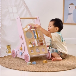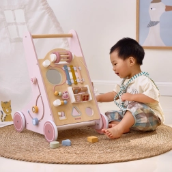Przedstawiamy Drewniany chodzik dla maluchów PolarB w różowym kolorze, zaprojektowany dla dzieci od 18 miesięcy. Łączy zabawne aktywności takie jak obserwacja w lustrze, obrotowe klocki, błyszczące koraliki, sortowanie kształtów i gra na ksylofonie. Z tym chodzikiem Twoje dzieci bezpiecznie odkrywają świat wokół siebie.