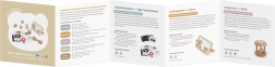 - Drewno z certyfikatem FSC, papier/karton (karty kontrastowe), inne bezpieczne materiały