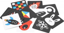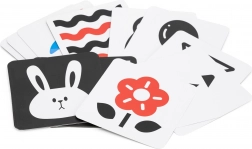 Seria czarno-białych i czerwono-białych kart z prostymi kształtami i obrazkami naturalnie przyciąga wzrok dziecka. Wspiera fiksację, śledzenie obiektu oraz wczesną percepcję wzrokową – idealne dla noworodków i młodszych niemowląt.