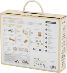 Poszczególne elementy wykonano z wysokiej jakości i trwałych materiałów, w tym z drewna z certyfikatem FSC. Zestaw łatwo przechowasz w praktycznym opakowaniu z uchwytem – idealny w domu i w podróży.