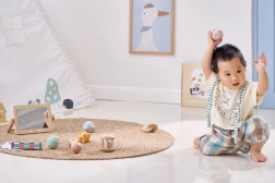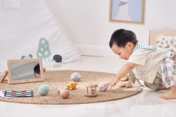 Wytrzymałe lusterko z drewnianą ramką pomaga podczas „tummy time”, wspiera unoszenie główki, wzmacnia kark i umożliwia pierwszy kontakt z własnym odbiciem. Świetne do rozwoju samoświadomości i umiejętności społecznych.
