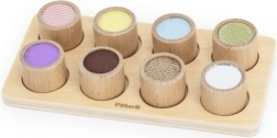 Dotykowa tablica z różnorodnymi powierzchniami pobudza ciekawość i pomaga dzieciom rozróżniać faktury i kolory. Wspiera integrację sensoryczną, zasób słownictwa oraz precyzję ruchów palców.