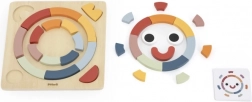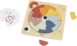 Drewniana układanka z wyrazistymi kolorami i kartami wzorów uczy dzieci planowania, śledzenia schematów i precyzyjnego dopasowywania kształtów. Trenuje logikę, cierpliwość i koordynację oko–ręka.