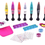 - Kompletne wyposażenie: pisaki/lakiery, naklejki, brokaty, separatory, pilniczek, mini suszarka
