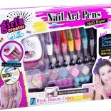 Kreatywny zestaw do manicure i pedicure dla dzieci zawiera wszystko, czego potrzeba do oryginalnego zdobienia paznokci: 7 kolorowych pisaków/lakierów z precyzyjną końcówką i pędzelkiem, brokaty, naklejki, separatory palców oraz praktyczną mini suszarkę na baterie. Świetna zabawa do domowego SPA i spotkań z koleżankami.