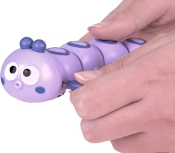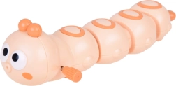 Wystarczy kilka razy obrócić boczny kluczyk, a gąsienica sama ruszy. Dzieci obserwują falujący ruch, uczą się zasady przyczyna–skutek i świetnie się bawią, goniąc ją po podłodze.