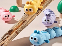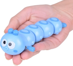 Ta urocza gąsienica na kluczyk po prostym nakręceniu sama porusza się do przodu i rytmicznie faluje, co naturalnie zachęca dzieci do raczkowania, podchodzenia i wspólnej zabawy. Dzięki wyrazistym kolorom i dużym oczom jest wizualnie atrakcyjna i pomaga skupić uwagę.