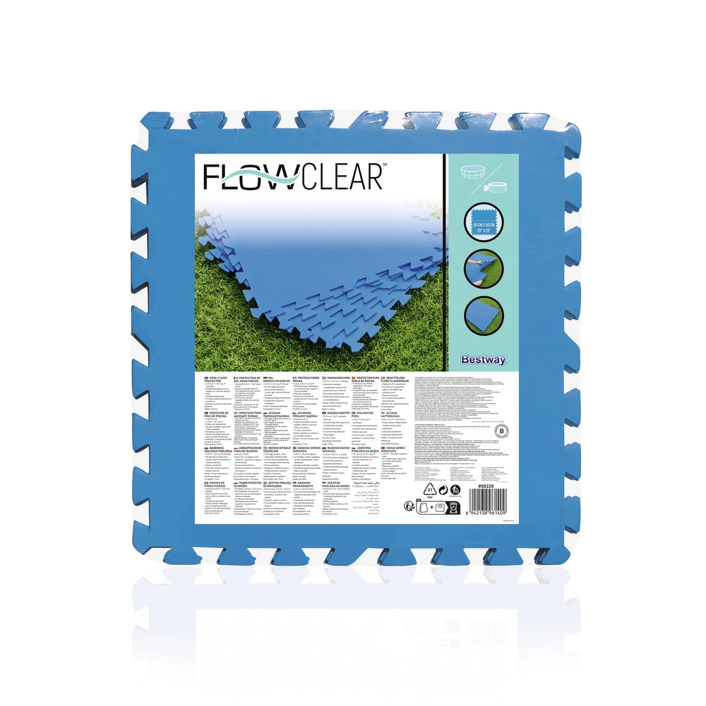Płytki są kompatybilne ze wszystkimi basenami naziemnymi BESTWAY oraz innymi markami o podobnych wymiarach. Dzięki wodoodpornemu materiałowi łatwo je czyścić i są idealne na trawnik, taras i płytki.