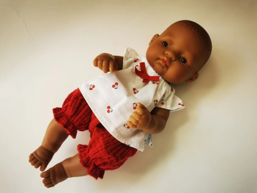 Muślinowy zestaw dla lalek 32 cm wiśnia
