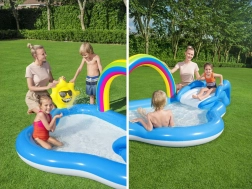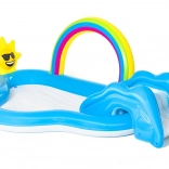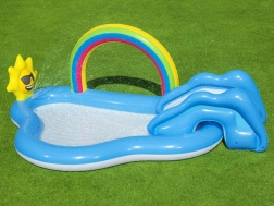 Ten wodny plac zabaw to idealny wybór dla dzieci na letnie dni. Dzięki przyjaznemu połączeniu tęczowej bramy i słoneczka Twoje dzieci spędzą długie godziny na zabawie w orzeźwiającej wodzie. Wielofunkcyjność baseniku nie tylko zapewnia chłodne schronienie przed letnim upałem, ale także dostarcza śmiechu i radości dzięki różnorodnym funkcjom.