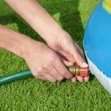 Basen wyposażono w zraszacz, który w prosty sposób podłączysz do ogrodowego węża, tworząc orzeźwiający prysznic wodny do zabawy i gier.