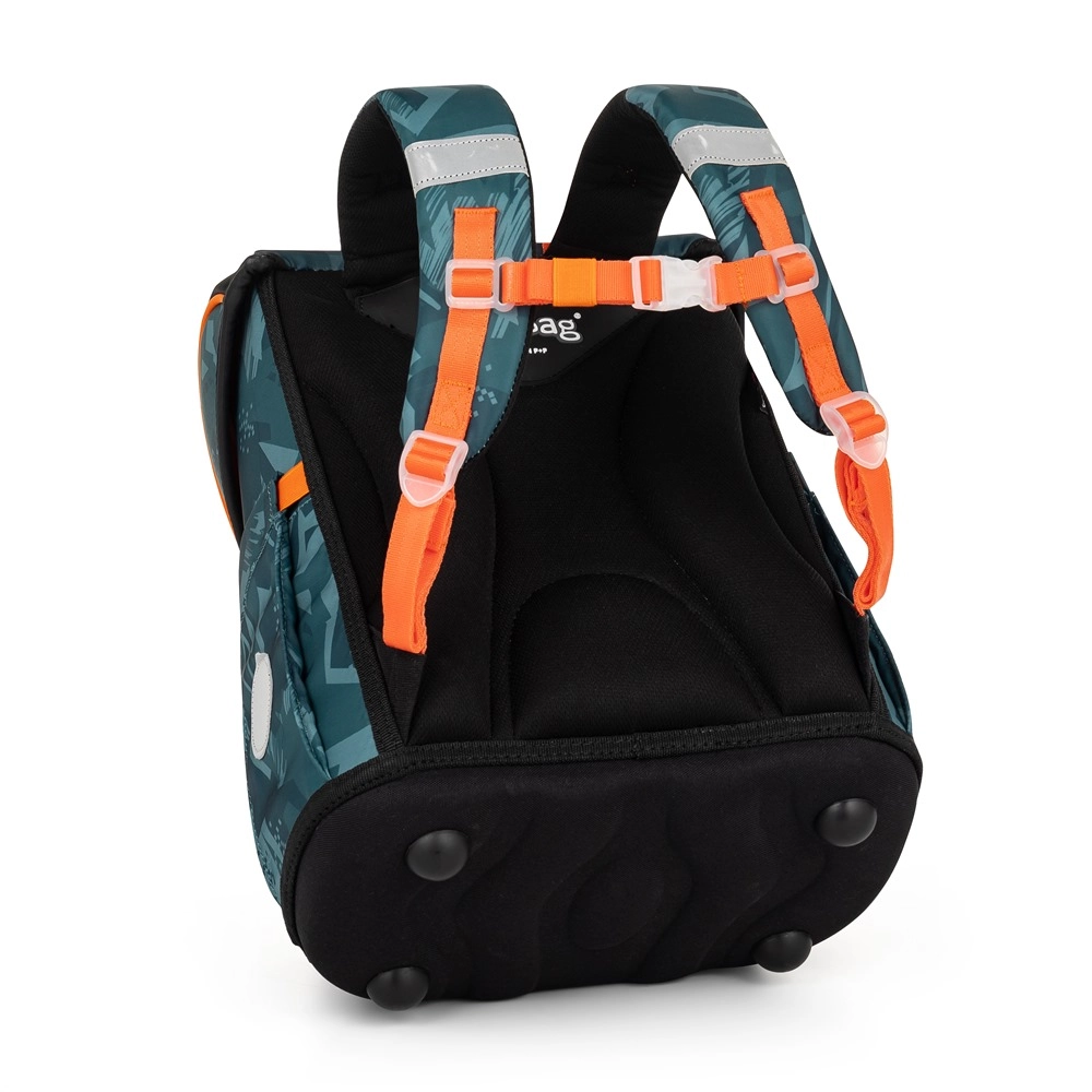 Bezpieczeństwo zwiększają elementy odblaskowe i metalowa klamra z odblaskiem. Sztywne dno chroni zawartość przed przewróceniem i rozsypaniem, a dodatkowe haczyki umożliwiają lepsze mocowanie szelek. Dzięki szerokim, miękko wyściełanym szelkom aktówka równomiernie rozkłada ciężar i odciąża dziecięce ramiona.