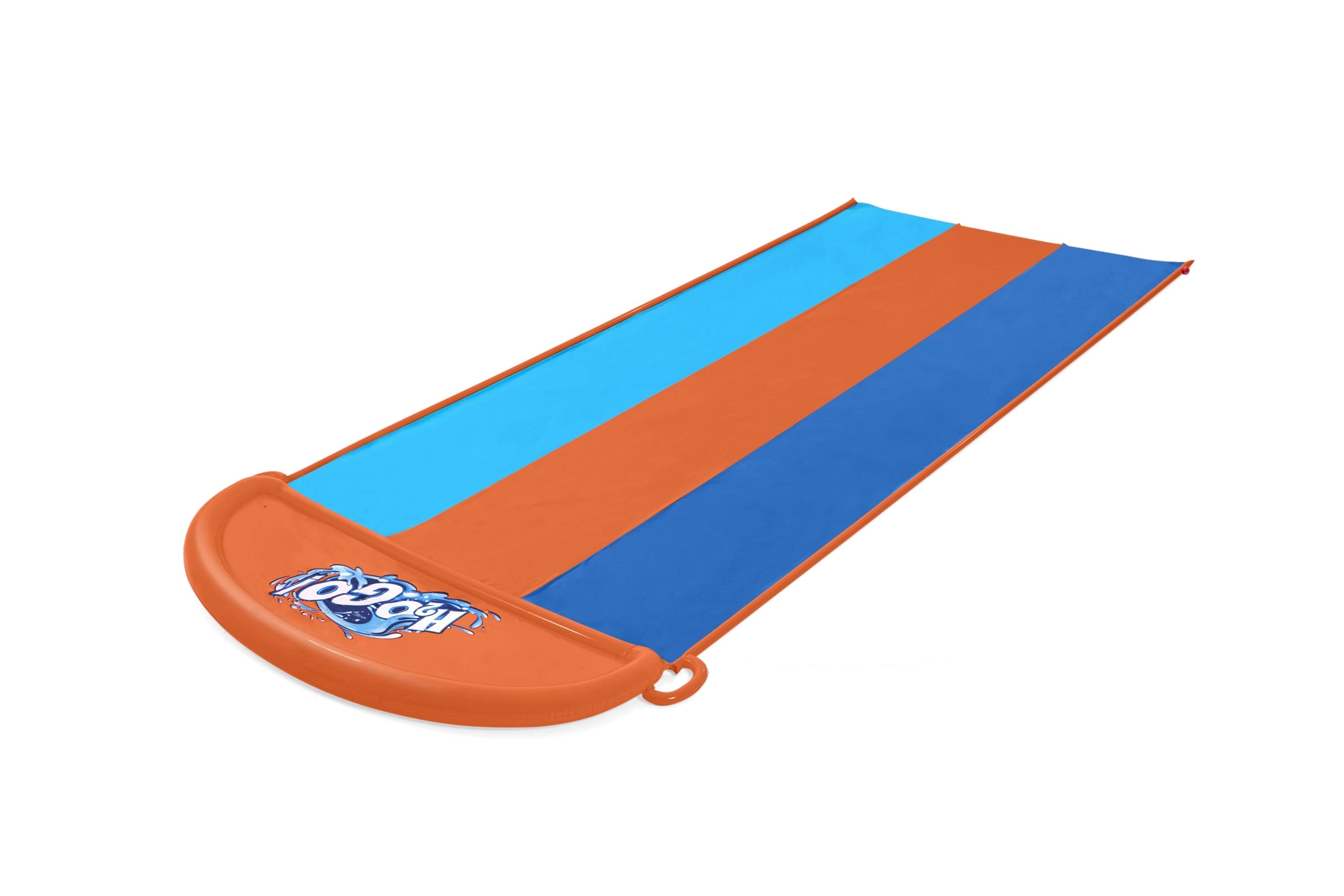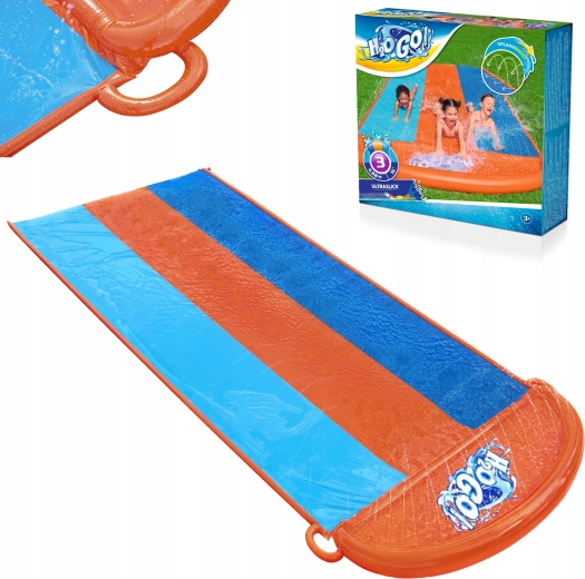 Zorganizuj domowe wodne wyścigi prosto w ogrodzie. Potrójny ślizg BESTWAY oferuje trzy równoległe tory, dzięki którym dzieci mogą rywalizować ramię w ramię. Boczne zraszacze tworzą delikatną kaskadę wody i utrzymują powierzchnię idealnie mokrą dla szybkiego i płynnego ślizgu.