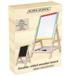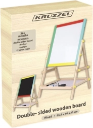 Dwustronna tablica dla dzieci KRUZZEL łączy kreatywną zabawę i naukę. Jedna strona oferuje powierzchnię kredową do rysowania kredami, druga białą powierzchnię sucheścieralną z funkcją magnetyczną do pisania markerem i pracy z magnesami. Obrotowy system pozwala szybko zmieniać stronę za pomocą śrub motylkowych.